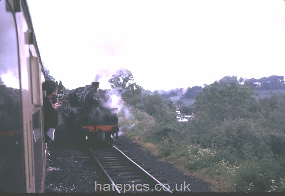 Ivatt 4MT 2-6-0 43106 arrives at Hampton Loade with a train from Bridgnorth
